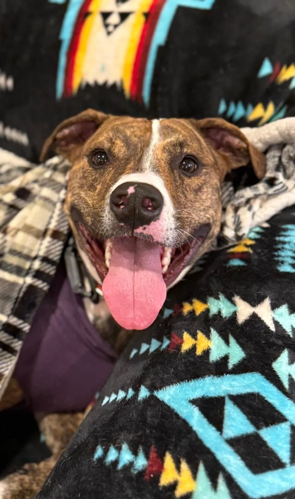 Hey y’all, I’m June, the South Carolina stray turned spitfire of the pack. I’m a lot of energy and a lot of fun and the best packmate you’ll ever have.